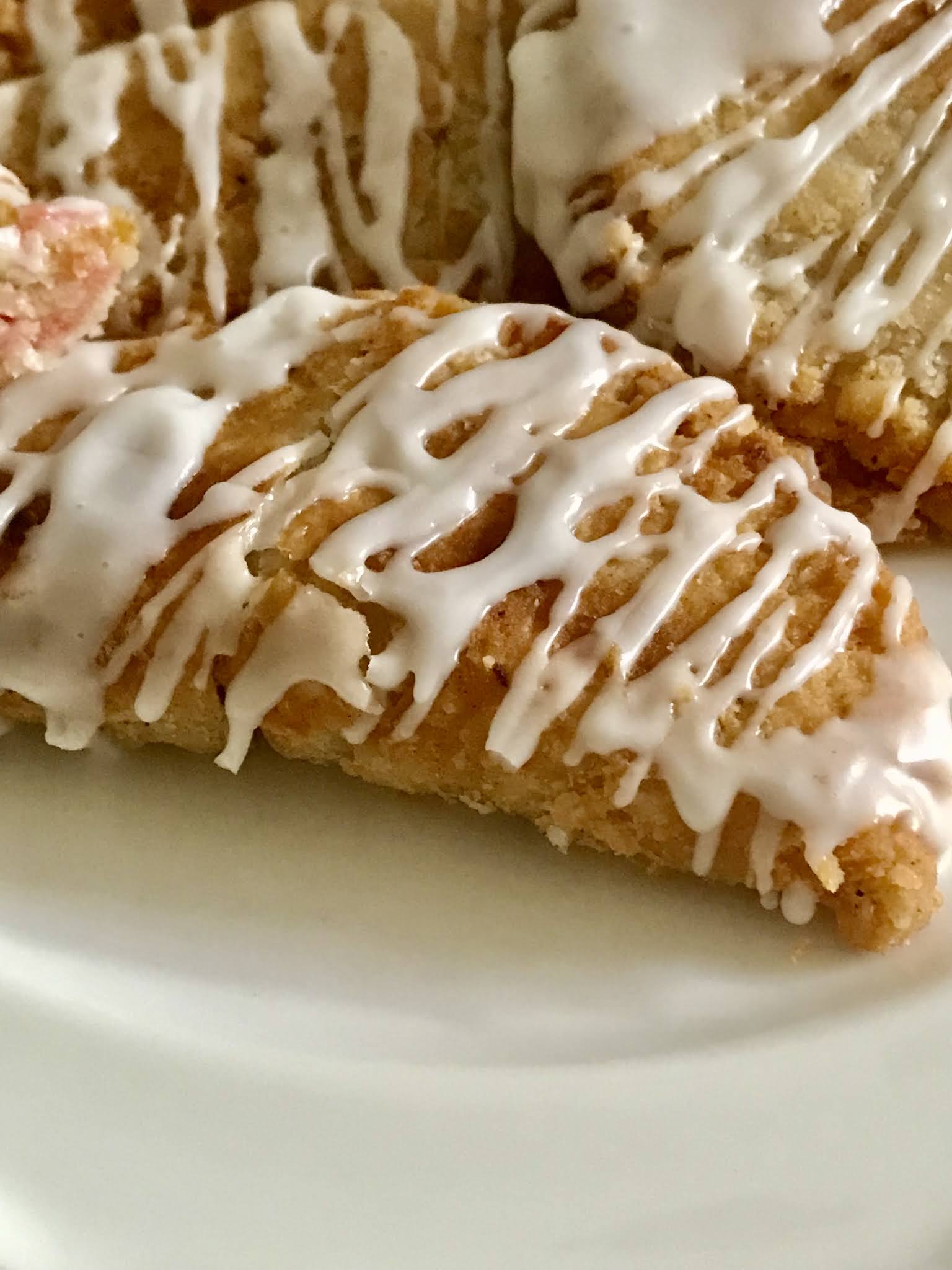 In a small bowl add 1 cup confectioner’s sugar, 1/4 teaspoon vanilla and 2 Tablespoons fresh lemon juice. Mix well. *If glaze is too thick, add an additional teaspoon of lemon juice or water to reach desired glaze consistency.