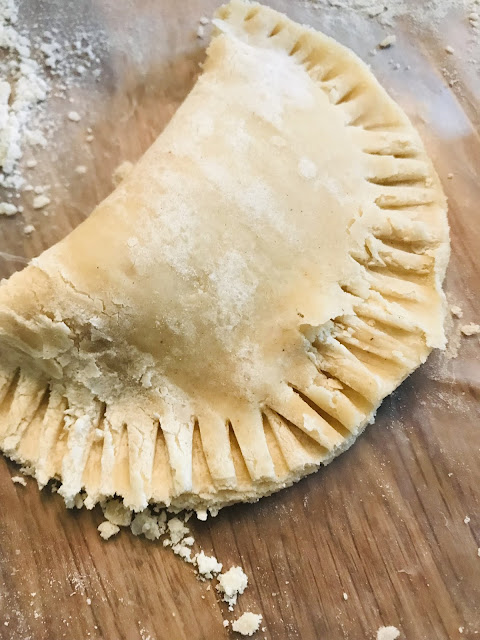 Place prepared hand-pies on a plate. Place in the refrigerator while the oil heats.