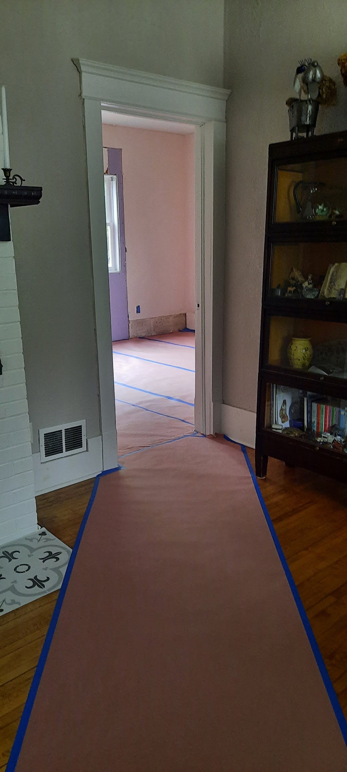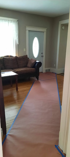 Instead of using my big canning kettle that holds nine jars and heating it on the outside propane burner, I am just doing six quarts in the house. I do not like putting the big canning kettle on my glass top stove, I have heard it may crack it. Instead I use my tall blue enamel soup pot, and I put in three jars at a time. Because there isn't a rack for the jars, I wrap each one in a burgundy cloth dinner napkin and I put one on the bottom of the kettle as well. That way the jars are not sitting on the hot metal. That can crack a jar. In the smaller red kettle on the right I keep the next three jars warm on a low setting just so they don't cool off too much after filling them. Once the first three jars have been in the hot water bath for 45 minutes, slowly simmering, then the next three jars will take their place.