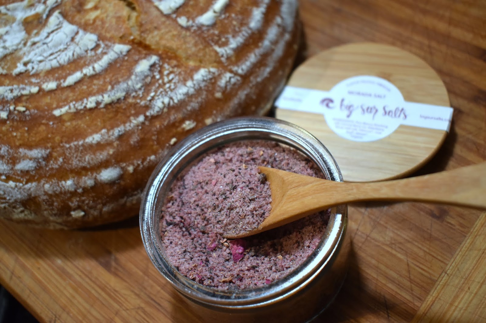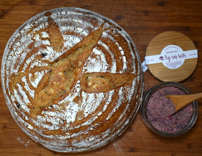 If you read my blog regularly, you'll know that this shelter-in-place order inspired me to buckle down and actually learn how to make sourdough bread. You can learn more about that in my Dough-Ba Fett's Sourdough Adventures tab, but basically, I baked a bunch of doorstoppers, then I started to get the hang of it, then I went off the deep end with variations and had to go back to the basics. And, now, after coming up with my standard loaf - Ten-Percent Rye Sourdough Boules - I am easing back into small changes. My biggest variations have come with using craft salts from Big Sur Salts. Carlo Overhulser is a local-to-me salt artisan who sources his salt from Big Sur pools and blends them with hyper-local ingredients. I have several on my counter at the moment, but it was his Morada Salt that inspired this set of boules.